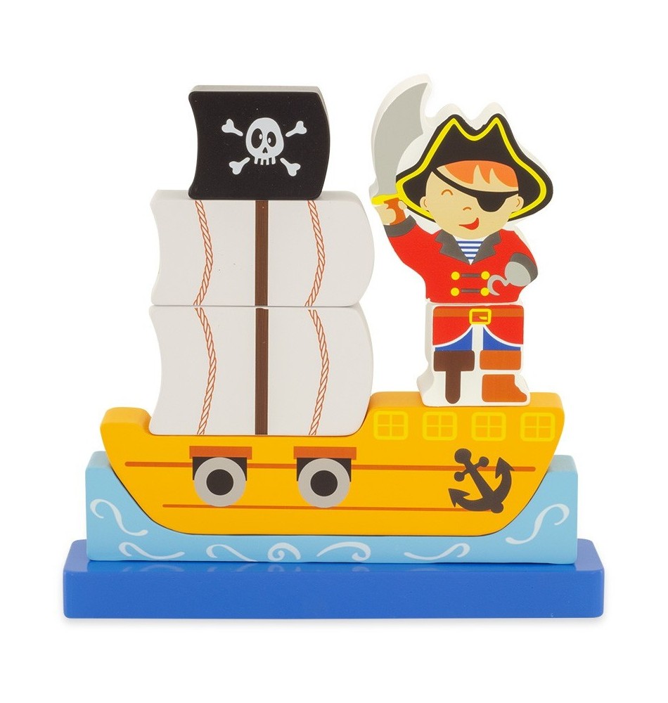 Ce puzzle de 8 pièces aimantées permet de construire un beau bateau de pirate avec son capitaine à bord !