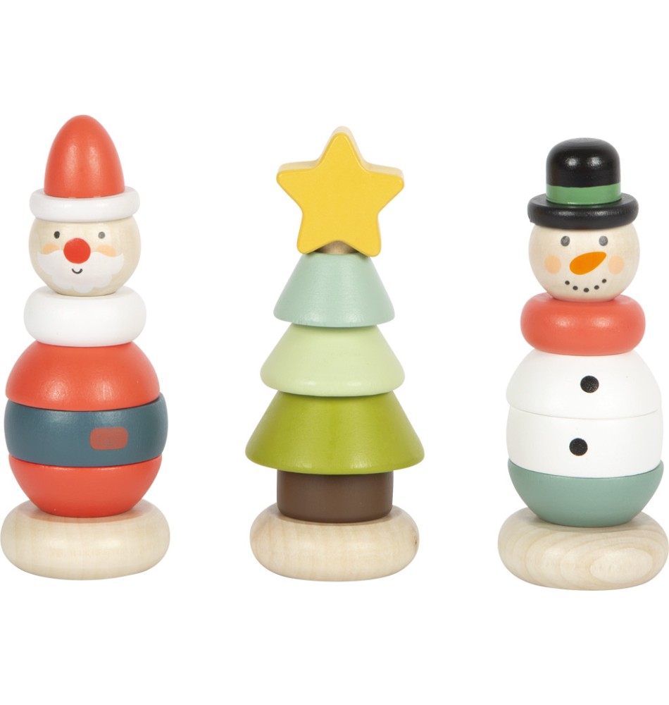 Le père Noël, le bonhomme de neige et leur sapin permettront de développer la créativité et l'imagination de votre tout petit grâce aux multiples solutions possibles d'empilage des anneaux de couleurs et de tailles différentes.