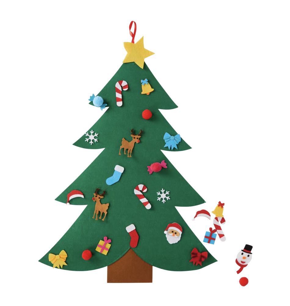 Arbre de Noël Interactif : Le Sapin à Décorer en Feutrine mesure 90 x 65 cm et est orné de nombreux accessoires en feutrine amovibles, tels que des étoiles, des cadeaux, des sucres d'orge et bien plus encore. Les enfants peuvent les accrocher et les enlever à leur guise pour créer leur propre décor de Noël.