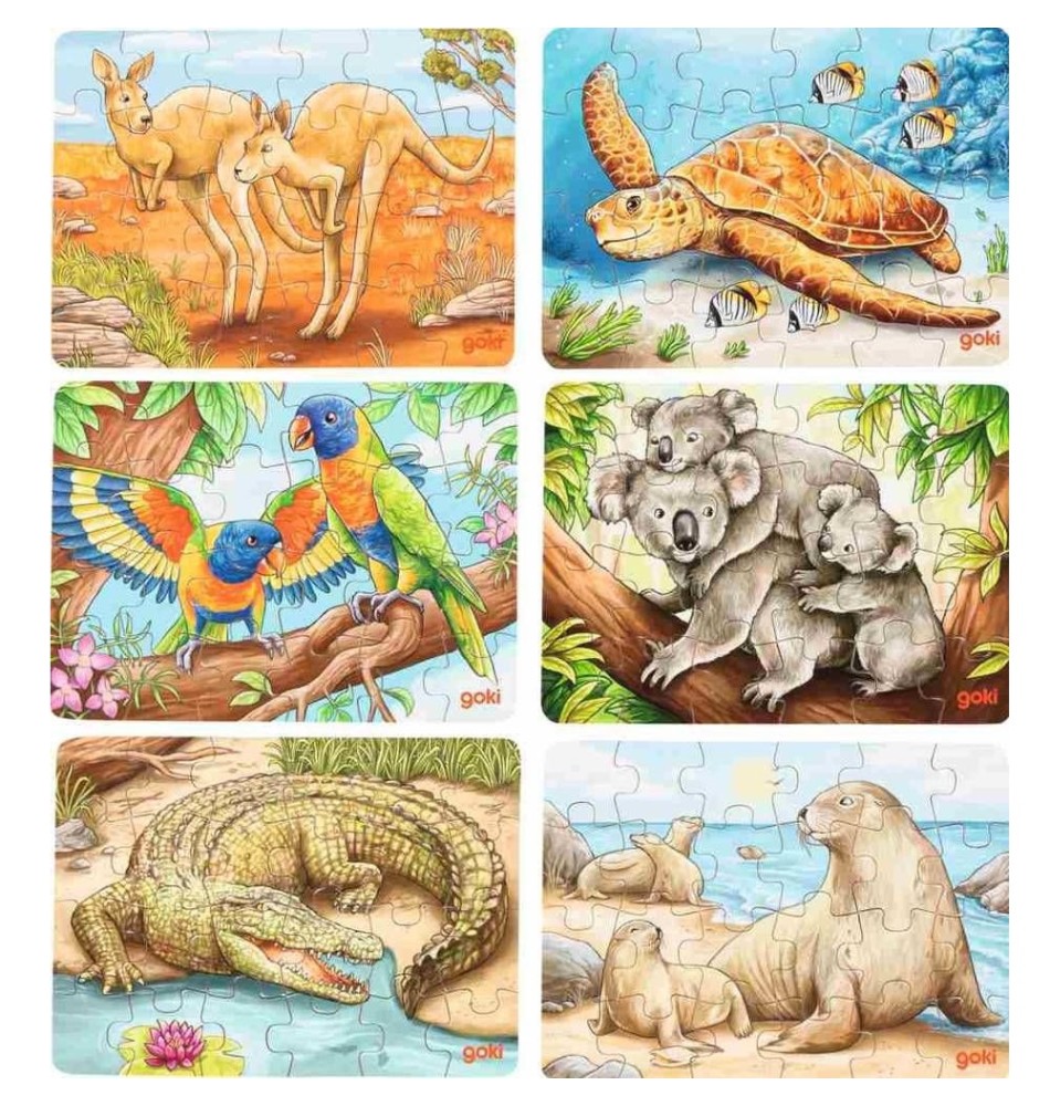 Ces petits puzzles en bois de 24 pièces permettront de développer l'analyse, l'observation, la patience, la capacité à reproduire, l'apprentissage des animaux d'Australie ainsi que la motricité fine de l'enfant dès 4 ans.